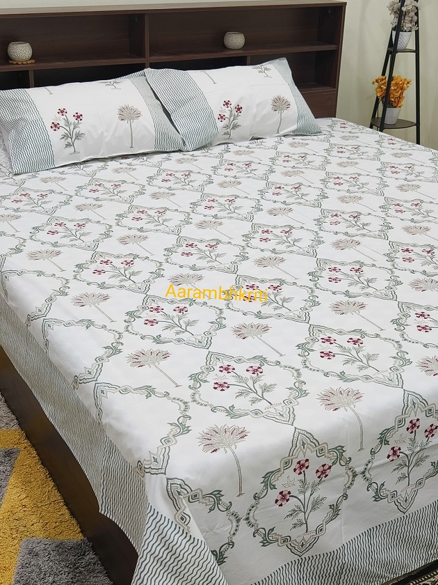 Aarambh Prints: Cotton Handblock Printed Bedsheet Set with Pillow Covers